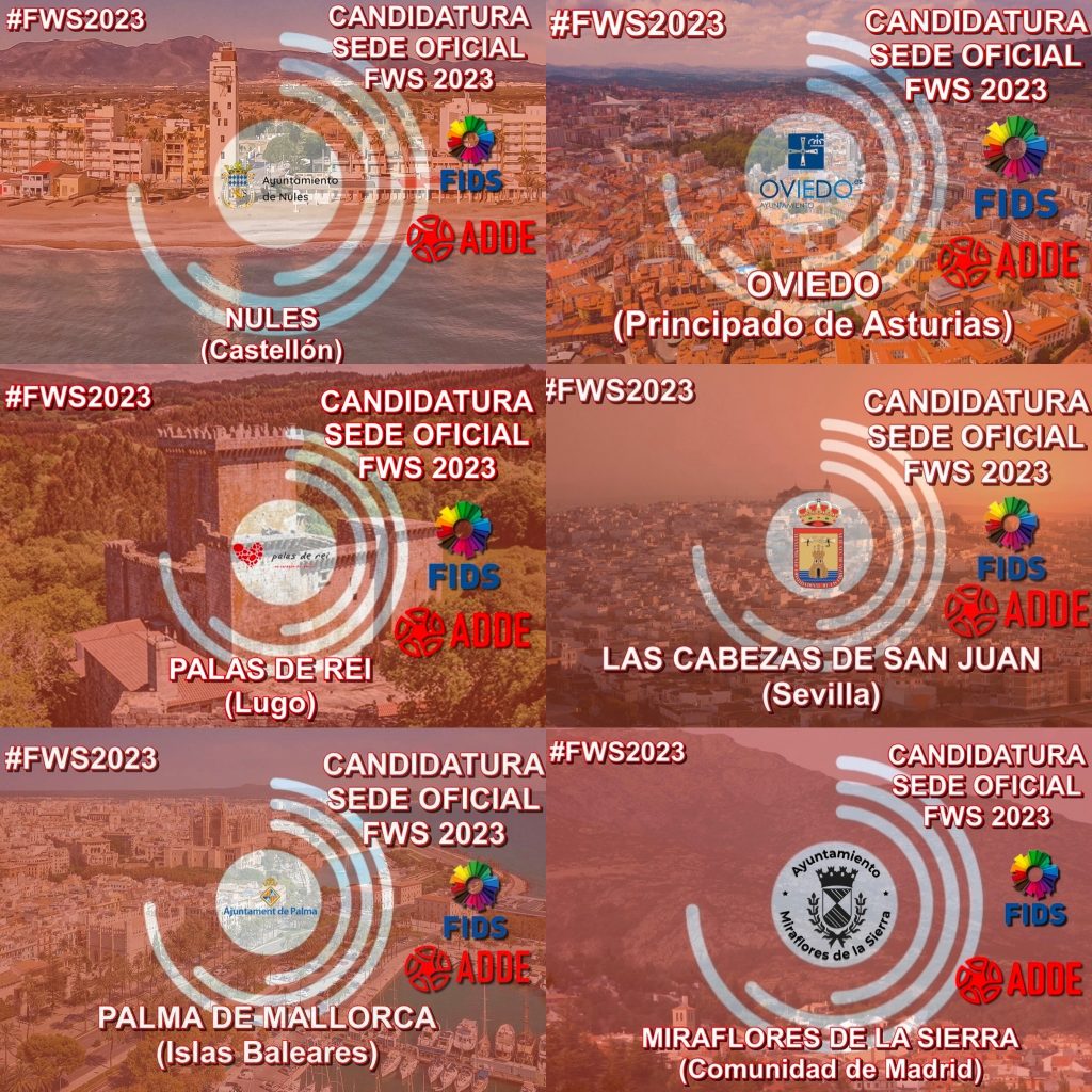 Pasadas las 18:00 horas del 18 de octubre de 2023, siendo este el plazo para la presentación de candidaturas, desde la Asociación de Directores Deportivos Españoles, nos complace anunciar que han sido aprobadas la totalidad de seis candidaturas municipales tras su compromiso y cumplimiento de las bases para poder participar en la FWS 2023.