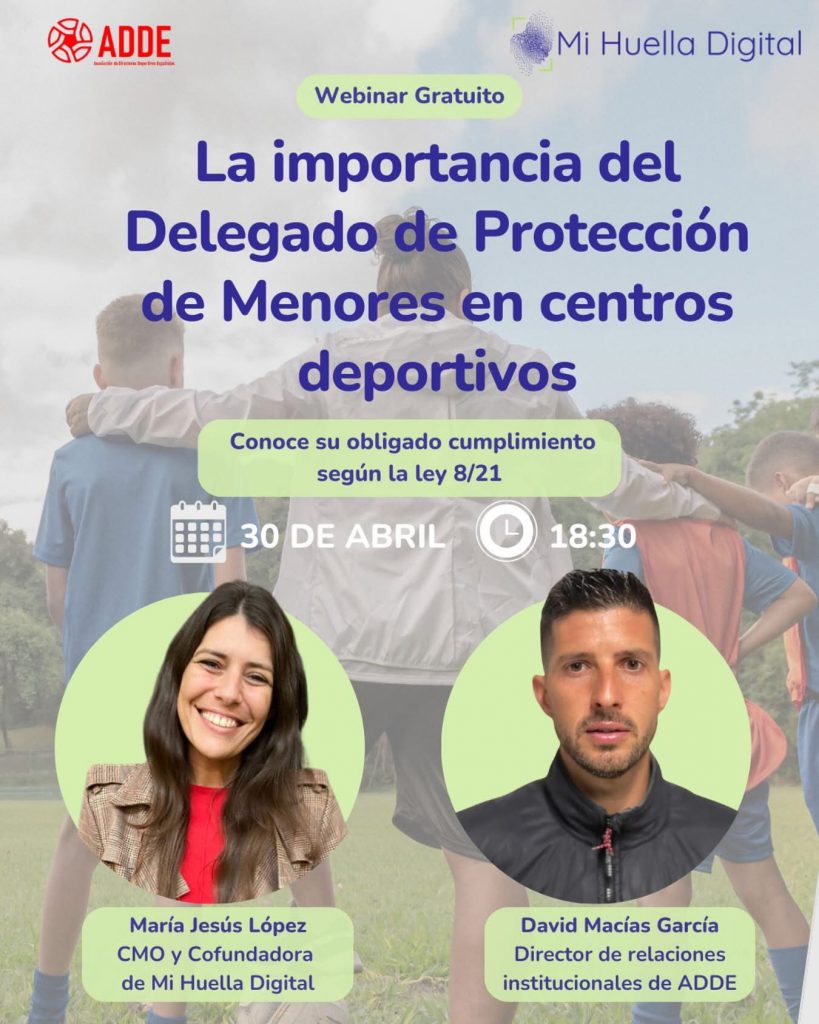 David Macías, nuestro Director de Relaciones Institucionales en la Asociaciones de Directores Deportivos Españoles (ADDE), en esta nueva ocasión, será el invitado especial para tratar nuestro acuerdo y compromiso con Mi Huella Digital; así como la importancia y obligatoriedad de la figura del Delegado de Protección de Menores en nuestros clubes.