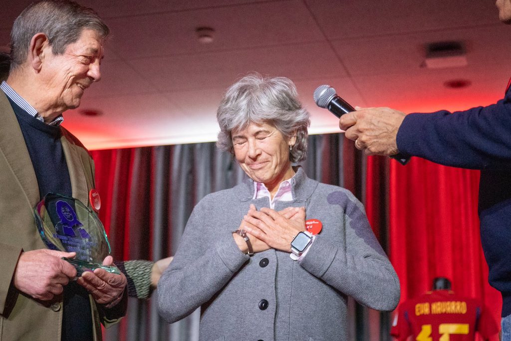 La segunda edición de “Atleti en Femenino”, rindió tributo en esta ocasión al mundo del deporte femenino, galardonando a nuestra compañera María Vargas (Directora de Fútbol Femenino ADDE) por su trayectoria.